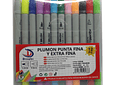 Plumón - Marcador 12 Colores punta pincel y fina - doble punta.