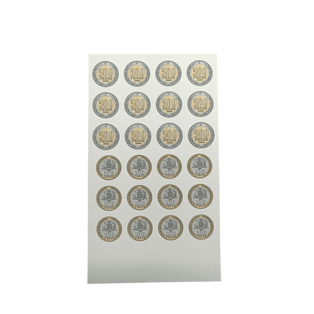 - 18 monedas de $5 (1,5 cm de diámetro)